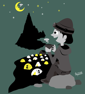 テントの花を眺めて